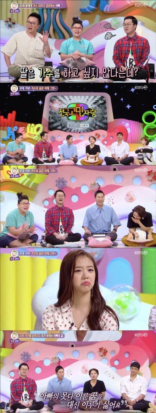 또한 아버지는 딸을 가수로 키우려다 사기까지 당했고, 무려 10억 가까이 쓰게 됐다고 말했다. 딸은 “그래서 안하고 싶다. 미안한 마음이 크다”라며 눈물을 흘렸다.