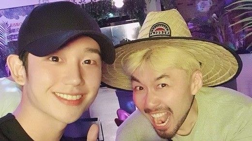 사진은 노홍철과 정해인이 제주도에서 환하게 웃고 있는 모습이 담겼다. 나란히 FNC엔터테인먼트 소속인 두 사람은 최근 MBC '같이 펀딩' 녹화에 함께 한 사실이 알려진 바 있다. 해맑은 표정이 단연 눈길을 끈다.