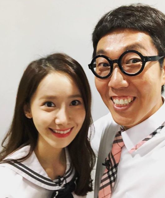 공개된 사진을 보면 '아는 형님'의 시그니처 의상인 교복을 입고 있는 김영철과 조정석, 윤아의 모습이 담겨 있다.