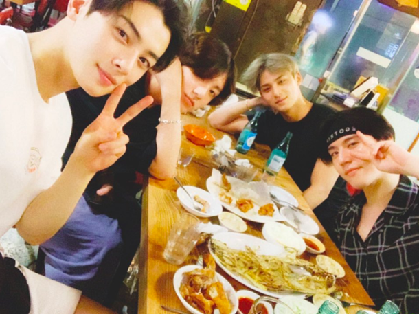 사진 속에는 정국을 비롯해 아스트로의 차은우, 세븐틴의 민규, 갓세븐의 유겸 등이 한 자리에 모여 술자리를 가지고 있는 모습이다.