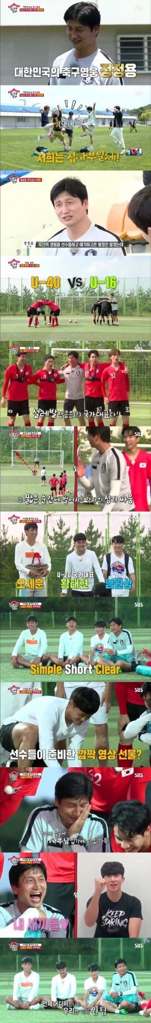 이후 멤버들은 정 감독의 지도하에 U-16 국가대표 선수들과 팀워크 훈련 대결을 하기도 했다. U-16 팀과 일명 ‘U-40 팀’ 멤버들은 접전의 팀워크를 보여줬고, ‘집사부일체’ 멤버들이 간발의 차로 첫 승리를 가져갔다.