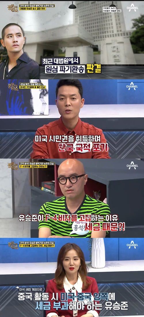 이 가운데 ‘풍문으로 들었쇼’ 출연진들은 유승준이 F4 비자 발급을 신청하는 이유가 세금과 관련한 이유라는 추측을 내놨다.