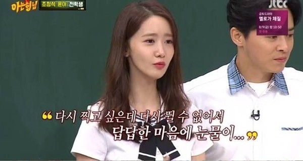 윤아는 "눈물이 났는데 힘든 것도 힘든 건데 다시 찍고 싶은데 다시 뛸 수 없어서 답답하더라. 속상해서 너무 힘들어서 울었다"고 고백했다. 윤아는 "(조정석이) 말도 못하고 있는 상황에 대신 감독님께 의사도 전달해줬다"고 설명했다.