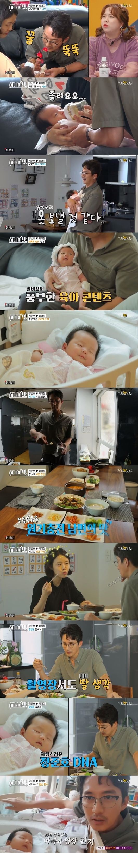 정준호는 딸이 모유를 먹자마자 트림부터 시켰고, 아내에게 "전복 버터 구이를 해주겠다. 잘 먹어야 건강한 모유가 나온다"고 말했다.