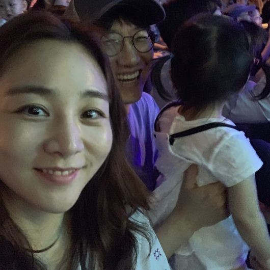 사진 속 조우종은 딸을 끌어안고 물고기를 구경하고 있다. 다른 사진에서는 웃고 있는 아내의 뒤에서 고개를 돌리고 있는 딸을 안고 환하게 웃고 있다.