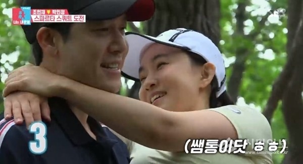 이날 등산 후 중간에 쉬게 된 조현재 박민정 부부는 운동을 두고 거래를 했다. 박민정 씨는 "나를 안고 스쿼트 20번 해보기에 도전해보라. 내가 대신 초코파이를 먹게 해주겠다"고 제안했다.