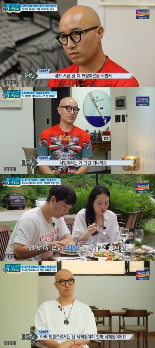 이날 남매는 "고마운 것보다는 미안한 점이 더 많다. 유학 지원해주는 것부터 어렸을 때부터 키워 주셨으니."라며 홍석천에 대한 고마움을 드러냈다. 하지만 홍석천은 "아빠로선 낙제점. 아빠 노릇을 못했다. 상황상 운동회 가서 다른 아빠들처럼 달리기를 할 수 있는 것도 아니고, 송풍을 따라갈 수도 없고. 일부러 아이들 주변에 있는 친구들한테서 숨어 있었다. 삼촌이 사회에선 특별한 사람이지 않냐. 아이들이 민감한 시기에 손가락질 받을까봐"라고 미안한 마음을 되레 드러냈다.
