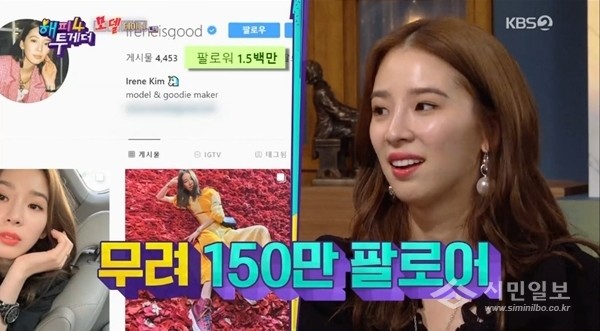 이에 장윤주는 "아이린이 우리 소속사에서 SNS 팔로우 수가 가장 많다"며 "150만 명이다"라고 말했다.