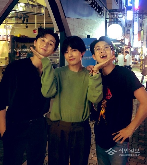 공개된 사진에는 박서준과 최우식 사이에서 장난스런 포즈로 미소 짓고 있는 뷔의 모습이 담겨있다. 편안한 차림으로 길에 서서 훈훈함을 자아내고 있는 세 사람의 모습이 팬들의 시선을 사로잡는다.