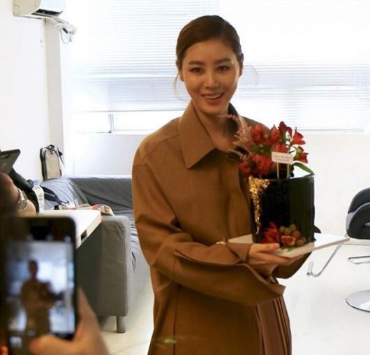 김성령은 지난 30일 자신의 인스타그램에 “#케잌 #꽃 #부채 선물까지 고마워용”이라는 글과 함께 사진을 게재했다.