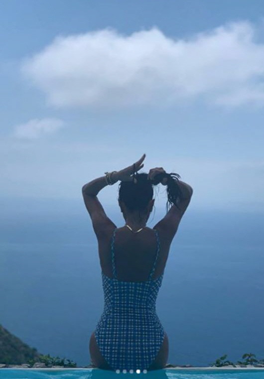 공개된 사진 속 이혜영은 수영장에서 바다를 바라보고 있는 모습이다. 이혜영의 늘씬한 수영복 자태가 시선을 사로잡는다.