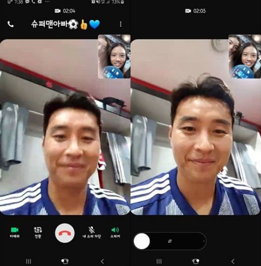 이와 함께 올린 사진에서 이동국은 딸 재시-재아와 함께 영상통화를 하고 있다. 경기장 선수 대기실에 이동국은 더운 날 관중석에서 지루하게 기다리고 있을 아이들을 걱정하며 다정한 미소를 짓고 있다.