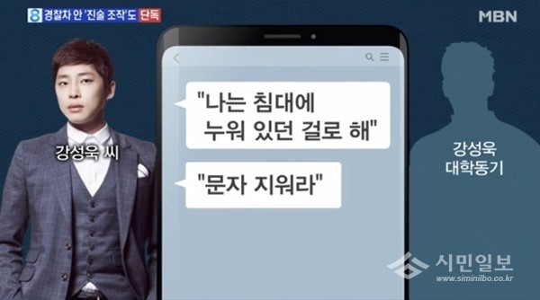 보도에 따르면 강성욱은 사건 직후 피해 여성이 경찰에 신고하려 하자 여성의 휴대전화를 빼앗았다. 또 성폭행 후 함께 경찰서로 연행 중이던 대학동기에게 '나는 침대에 누워 있던 걸로 해' '문자 지워라'고 메시지를 보내는 등 진술 조작을 시도한 것.
