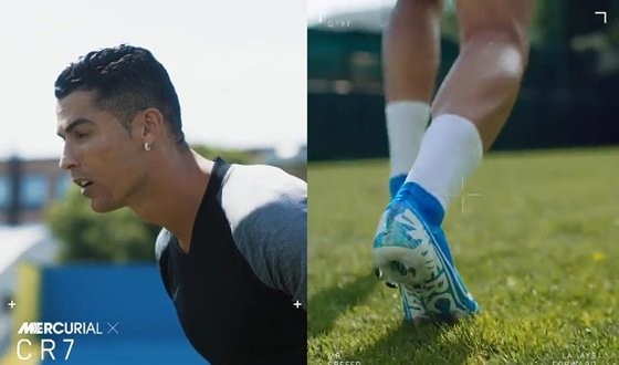 빠른 스피드를 강조하기 위해 호날두 주위에만 잔상을 남긴 것이 특징이다. 축구화는 하늘색이고, 호날두의 이름을 딴 'CR7'이라는 글씨도 눈에 띈다. 실제로 호날두는 자신의 이니셜과 등번호인 'CR7'을 브랜드로 내걸고 각종 사업에 이용하고 있다.