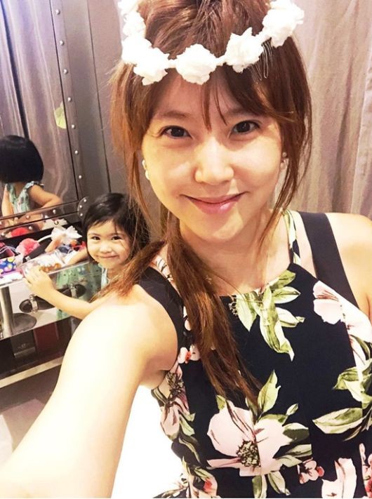 사진 속 이윤미는 화려한 플라워 패턴의 의상을 입고 화환을 쓴 채 환한 미소를 짓고 있다. 특히 그의 둘째 딸인 라엘 양 역시 웃음을 머금은 모습으로 카메라를 응시하고 있어 눈길을 끌었다.