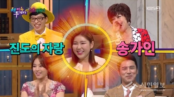 최근 방송된 KBS2 예능프로그램 '해피투게더4'는 '트롯투게더' 특집으로 꾸며져 송가인이 출연해 화려한 입담을 과시했다.
