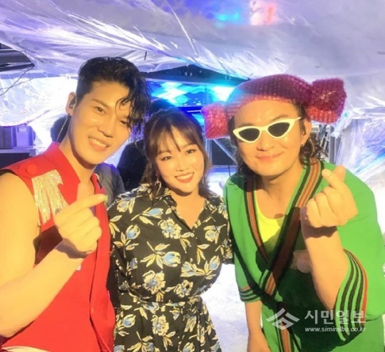 공개된 사진 속 정미애는 독특한 스타일로 꾸민 노라조 멤버 조빈과 원흠 사이에서 다정한 포즈를 취하고 있는 모습으로 감탄을 자아냈다.