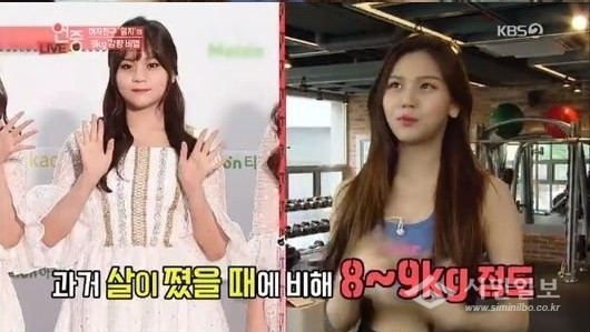걸그룹 여자친구 막내 엄지는 최근 9kg을 감량해 예뻐진 모습으로 화제를 모았다. "살이 너무 많이 빠져서 못 알아볼 뻔했다. 체중이 얼마나 빠졌냐?"라는 질문에 엄지는 "살이 많이 올랐을 때와 비교하면 8~9kg이 빠졌다. 젖살이 빠져서 더 많이 빠졌구나 생각하시는 것 같다. 주변에서 아기인 줄 알았는데 의외의 모습이 있는 것 같다고 해주신다"고 답했다.