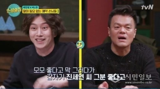 과거 방송된 tvN ‘인생술집’에는 가수 박진영이 출연해 김희철에 대해 언급해 눈길을 모았다.