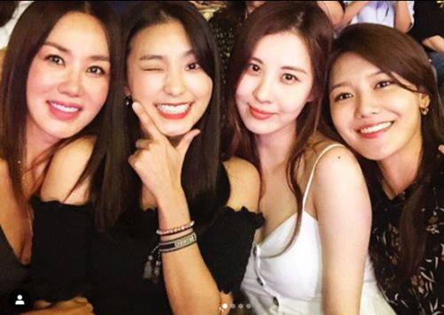 함께 올린 사진에서 엄정화는 티파니를 중심으로 보라, 서현, 수영과 다정하게 포즈를 취하고 있다. 솔로 컴백한 티파니의 공연장에서 만나 빛나는 미모의 우정샷을 완성해 팬들을 더욱 흐뭇하게 만들고 있다.