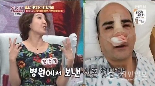 전수경은 “수술은 어차피 내일 해야 한다고 하니 멀리서 온 하객들을 위해 결혼식을 진행했다. 결혼 사진은 반창고를 붙인 채 찍었다. 수술을 위해 신혼여행은 포기했다. 병원에서 신혼 첫날밤을 보냈다”라고 설명해 놀라움을 자아냈다.