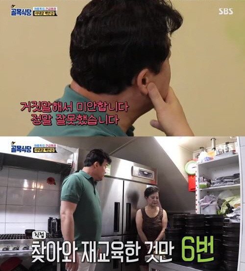 백종원은 "다른 프로그램들은 이렇게 안 한다. 사명감을 갖고 하는 거다. 경기가 어렵다고들 하는데"라고 말하다가 울컥해 말을 더 이상 잇지 못했다. 남자 사장님은 "대표님 마음에 상처 드려서 죄송하다. 제작진도 많이 도와주셨는데 면목이 없다. 처음부터 다시 시작하고 달라진 모습 보여드리겠다. 용서해달라"라며 눈물을 흘렸다.