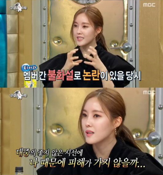 이날 효민은 소녀시대 써니, 유리에게 고마움을 표하기도. 효민은 "티아라 불화설로 힘든 시기에 원래 인사했던 동료, 선후배들이 저희를 피하는 게 느껴졌다"고 털어놨다. "함께 사진을 찍어서 SNS에 올릴 때도 허락받아야 할 것 같고 미안한 마음이 들었다"는 것.