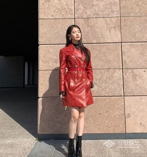 공개된 사진 속엔 빨간 가죽재킷에 부츠를 매치한 이지은가 햇살을 받으며 눈을 감고 있는 모습이다. 특히, 극세사 각선미가 돋보이는 아이유의 모습이 인상적이다.