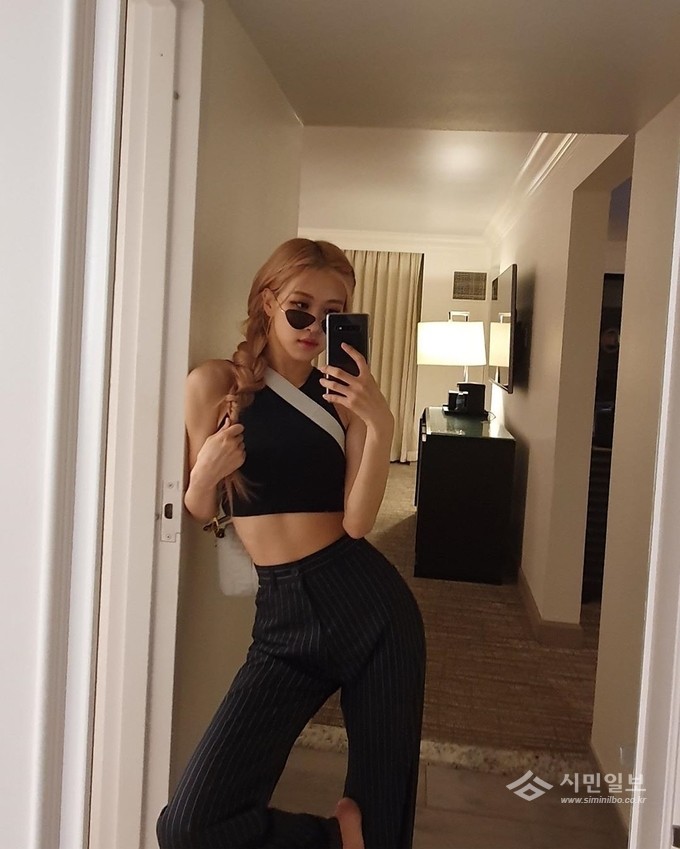 공개된 사진 속에는 로제가 잘록한 허리라인이 드러난 튜브톱에 줄무늬 팬츠를 매치하고 포즈를 취하고 있다. 선글라스를 살짝 내려 쓴채 거울 셀카를 찍으며 S라인을 강조한 포즈를 취한 모습이 매력적이다.