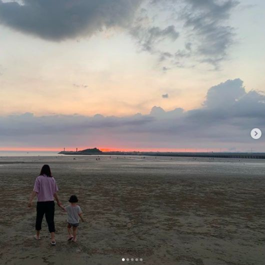 사진 속에서 백지영은 딸 하임과 해변을 걷고 있는 모습. 함께 손을 잡고 걸어가는 투샷이 눈길을 끈다.