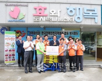 [시민일보]한전 인천본부(본부장 장재원)는 최근 사회적 기업을 후원하고 차상위계층에게 나눔을 실천하기 위해 사랑의 도시락 배달 봉사활동을 벌였다고 7일 밝혔다.