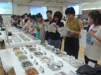 | ▲ 지난 7일 은평홀에서 열린 수산물 공동구매 최종 평가회에서 평가단이 급식납품 견본수산물을 평가하고 있는 모습. | ||