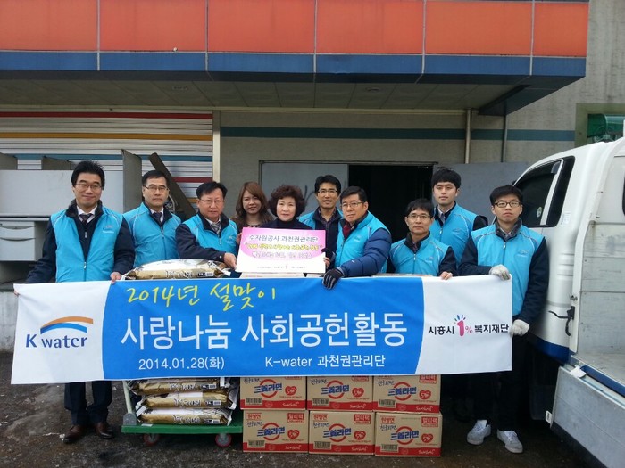 과천권관리단은 직원들이 자발적으로 모금한 물 사랑 나눔펀드를 조성하여 지역사회의 어려운 이웃에게 사랑을 전하고 나눔을 실천하면서 따뜻한 사회 만들기에 앞장서고 있다.