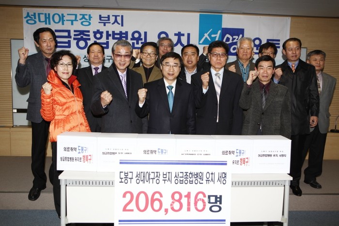 구는 지난달 27일 '성대야구장 상급종합병원 유치추진위원회'를 통해 종합병원의 설립을 바라는 지역주민 20만6816명의 서명을 전달받았다.