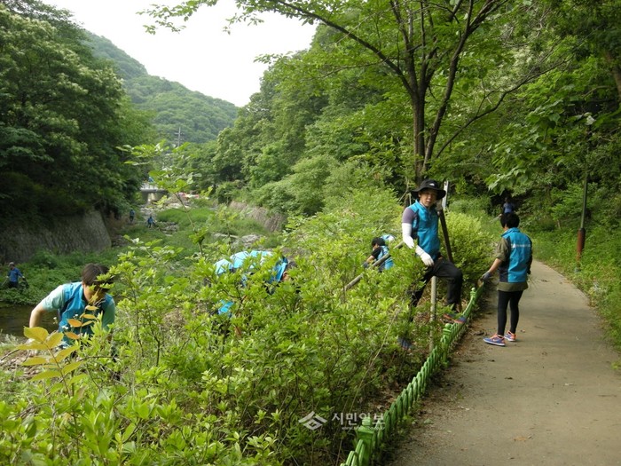지난 13일 경기 양주시시설관리공단이 장흥 관광지 일대에서 본격적인 행락철을 맞아 하천 및 관광지 주변에 쌓인 각종 쓰레기를 제거하고 화단을 정비해 쾌적하고 깨끗한 휴식 공간을 만들기 위한 환경정화활동을 실시했다. 사진은 이날 환경정화활동에 참여한 공단 직원들의 모습. (사진제공=양주시시설관리공단)