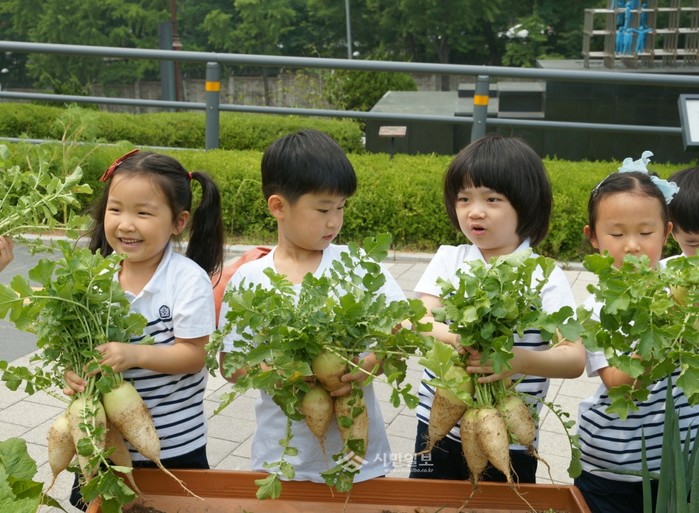 꼬마농부들 농작물 첫 수확