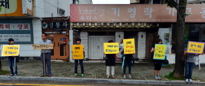 24일 오전 광주 동구 광주지방법원 앞에서 광주시민사회단체들이 '진상규명' '책임자 처벌' '특별법 제정' '잊지 않겠습니다'라고 적힌 피켓을 들고 '인간 띠 잇기'를 진행하고 있다.