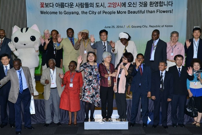 경기 고양시는 25일 공공행정 분야 세계 최고 권위의 국제행사인 ‘UN공공행정포럼’에 참가한 세계 100여국가의 행정부 장·차관과 공공행정분야 세계 석학, 주한 외국대사 등 핵심인사를 초청해 오찬을 갖고 시를 홍보했다. 사진은 최성 고양시장과 행사 참가자의 모습. (사진제공=고양시청)