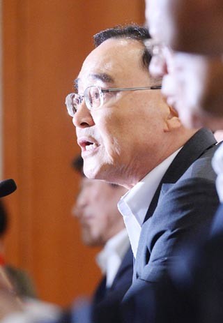 정홍원 국무총리의 유임이 결정된 26일 오후 정 총리가 서울 종로구 세종로 정부서울청사에서 열린 ‘국가정책조정회의’에서 모두발언을 하고 있다.