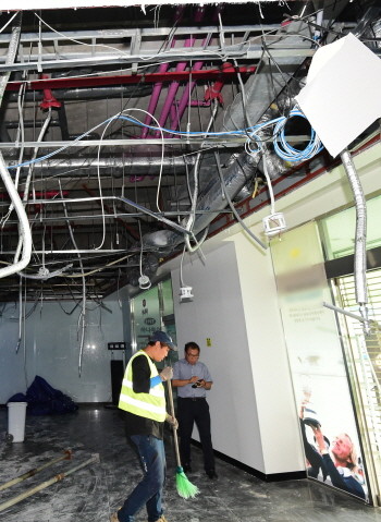 수원월드컵경기장 스포츠센터 천장 '와장창'