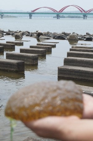 16일 낙동강 상류인 경북 안동시 용상동과 강남동 사이를 흐르는 낙동강 상류에서 직경 1~2㎝부터 30~40㎝까지 다양한 크기의 큰빗이끼벌레 수천마리가 서식 중인 것으로 확인됐다.