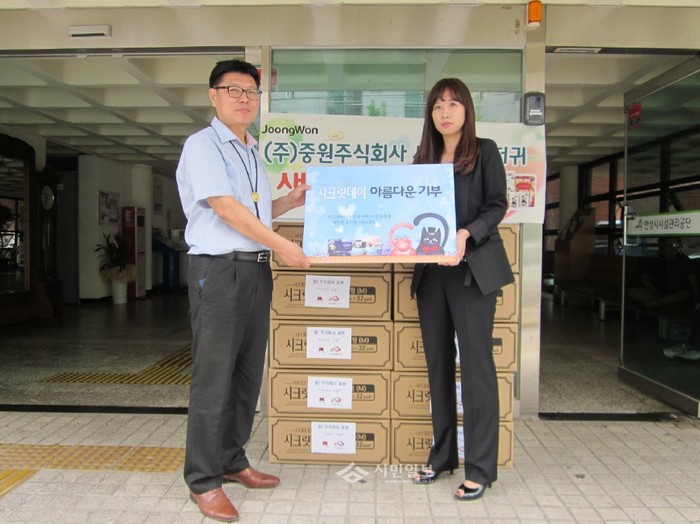 경기 안성시 대덕면에 위치한 ㈜중원은 최근 안성시 여성 복지를 위해 써달라며 160만원 상당의 생리대 10박스를 기탁했다. 시는 전달된 기탁물품을 안성관내 저소득 계층, 한부모 가정 등에 전달할 계획이다. 사진은 관계자들이 기념촬영을 하는 모습. (사진제공=안성시청)