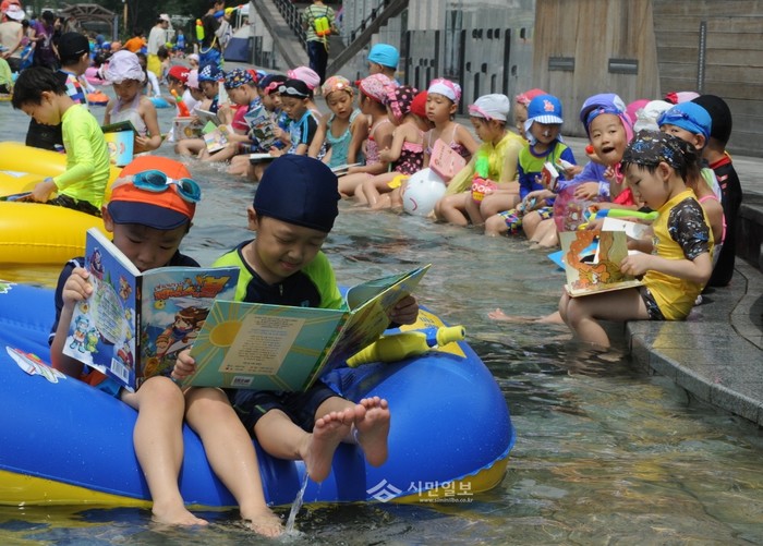 "나는 물놀이하면서 책 읽는다~"