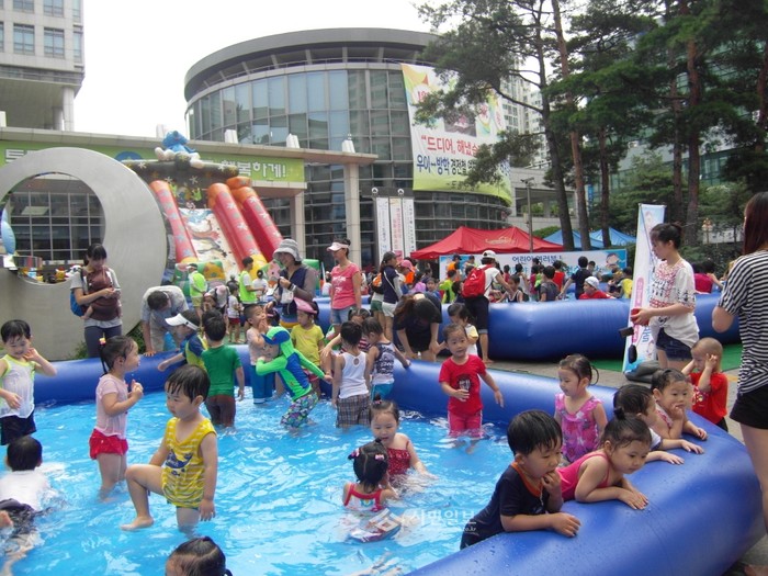 | ▲ 2013년 8월 구청 앞마당에서 운영된 야외수영장의 모습. 이곳에서 많은 주민들이 물놀이를 즐겼다. | ||