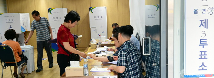 7.30 국회의원 재보궐선거일인 30일 오전 경기 수원 권선구의 한 투표소에서 유권자들이 소중한 한 표를 행사하고 있다.