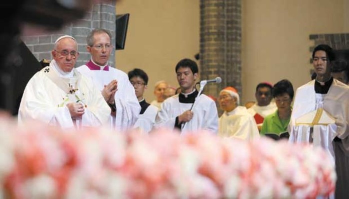 프란치스코 교황은 이날 오전 천주교 서울대교구 주교좌 명동대성당에서 집전한 '평화와 화해를 위한 미사' 강론에서 "예수님께서는 용서야말로 화해로 이르게 하는 문임을 믿으라고 우리에게 요청하십니다. 우리의 형제들을 아무런 남김없이 용서하라는 명령을 통해, 예수님께서는 전적으로 근원적인 무언가를 하도록 우리에게 요구하시고, 또 그것을 실행하기 위해 필요한 은총도 우리에게 주십니다"라고 전했다.