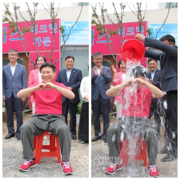 정찬민 경기 용인시장의 지명으로 26일 오전 사)내일을 여는 멋진여성경기협회 의정부지회 이전 개소식 행사 장소에서 아이스 버킷 챌린지 행사에 참여한 새누리당 홍문종 의원이 "국회 파행에 대해 반성하면서 루게릭 환자를 비롯한 소외계층을 위해 국회가 할 수 있는 일들을 깊이 고민할 것"이라고 다짐했다. 홍 의원은 이날 새누리당 정몽준 의원, 새정치민주연합 김한길 의원, 김진석 CJ헬로비전 대표를 지목했다.