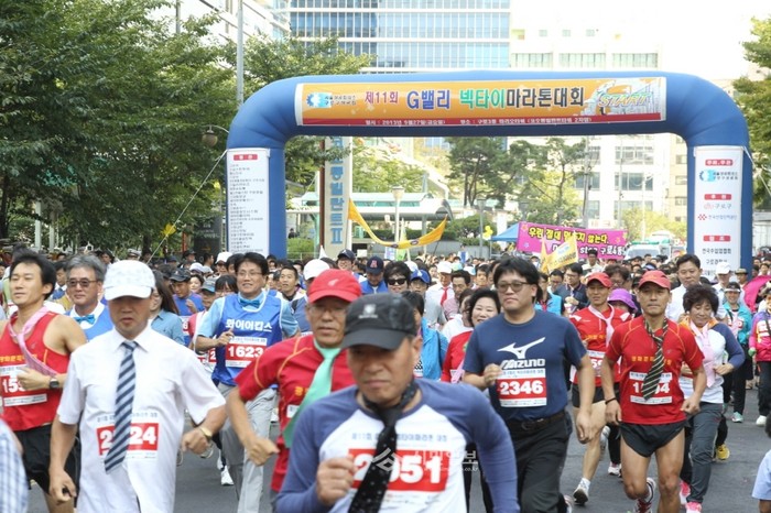| ▲ 지난해 열린 '제11회 G밸리 넥타이 마라톤대회' 참여자들이 출발하는 모습. (사진제공=구로구청) | ||