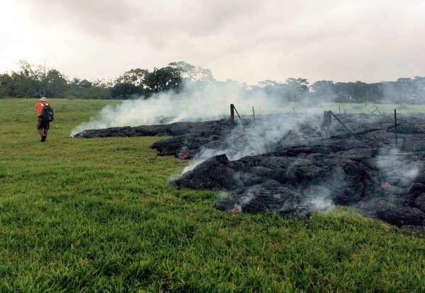 이 지역 공무원들은 용암이 어느쪽으로 흘러갈지, 가다가 멈추지나 않을지 감시하면서 용암의 진로에 해당되는 지역 주민들의 대피를 돕고 있다.