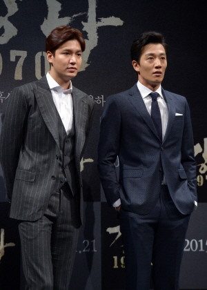 | ▲ 12일 오전 서울 압구정CGV에서 열린 영화 '강남 1970' 제작보고회에서 배우 이민호와 김래원이 포토타임을 하고 있다. | ||